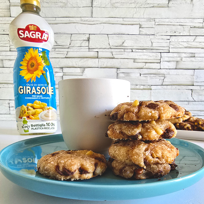 A questo punto aggiungere gocce di cioccolato e pinoli e completare l’impasto.