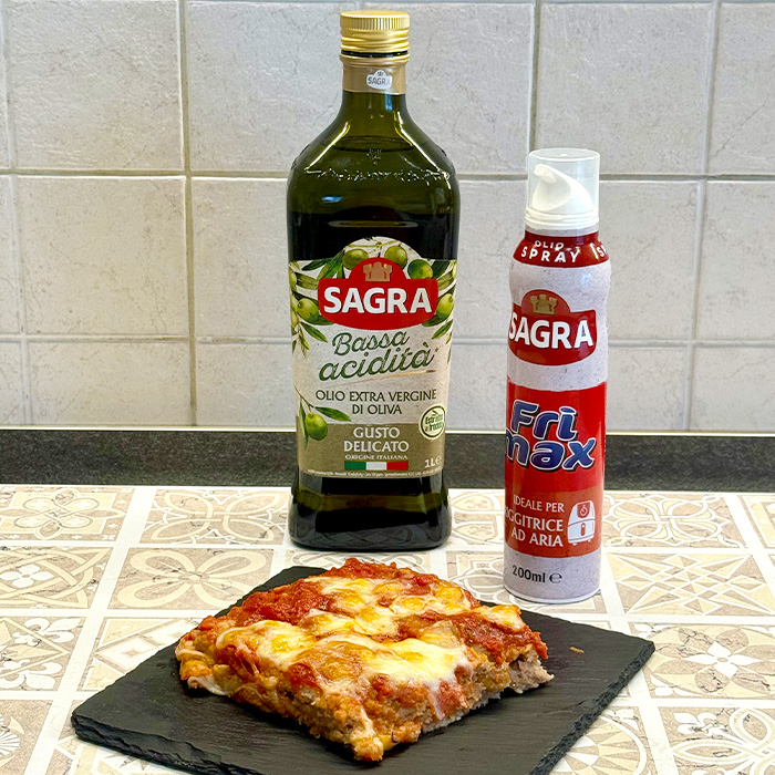 A questo punto rivestire la teglia con carta da forno, ungere con Olio Frìmax Spray Sagra e stendere il composto.