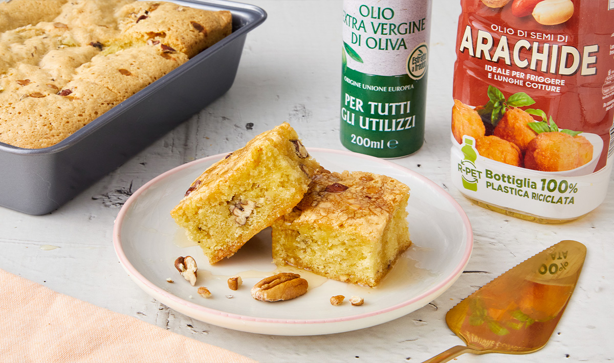 Blondies all’olio, cioccolato bianco e noci pecan
