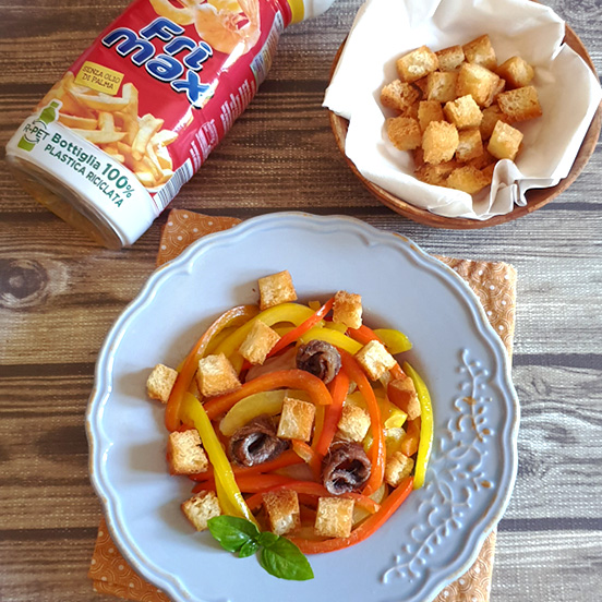Fettuccine di peperoni con crostini e alici