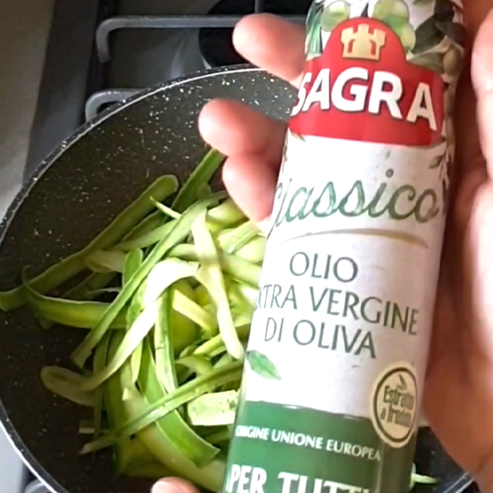 • 5 Quindi saltare le zucchine in una padella unta bene con Olio Sagra Classico Spray, salare a piacere e lasciarle croccanti.
