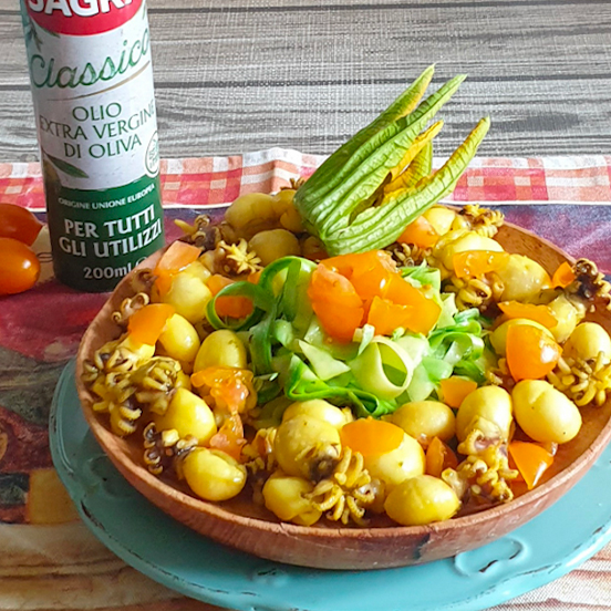 Insalata tiepida di seppioline e spaghetti di zucchine