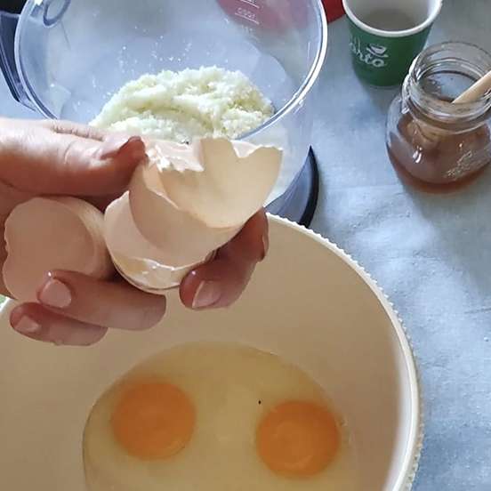 • 1 Raffinare finemente nel cutter la scorza del limone con lo zucchero. Quindi unire le 3 uova, il miele, il sale.