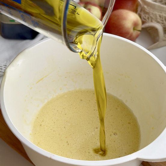 Quindi unire l’Olio Extra Vergine Bassa Acidità Sagra, l’acqua, il sale e mescolando aggiungere le farine e il lievito setacciato.