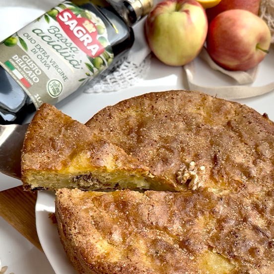 Torta frutta secca e mele con farina di mais